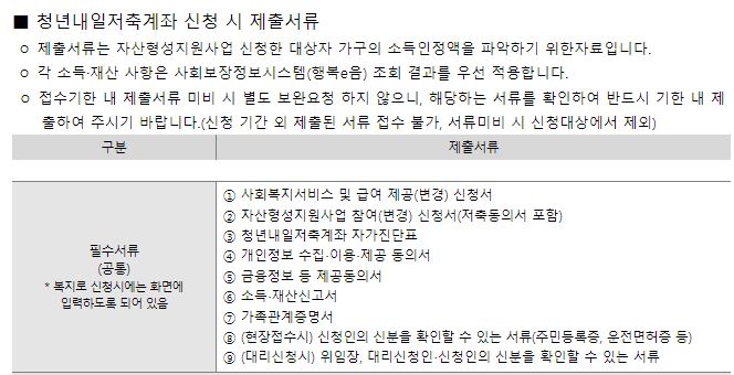 - 매월 10만 원 이상 저축 + 3년간 근로활동 지속 + 교육이수 +자금사용계획서 =근로소득장려금 1,080만 원 지원